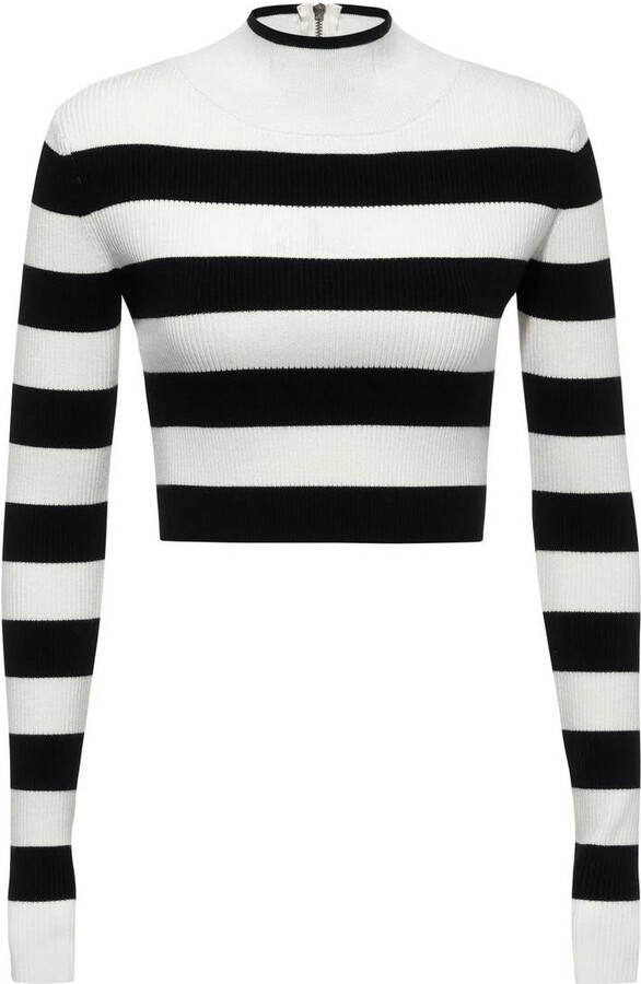 | Product Features | Details:Fit to perfection and effortlessly chic.Introducing the Meet Me Sweater, a fall classic that will elevate your wardrobe. Made with a thick black and white stripe, this cropped sweater features a tight fit, long sleeves, and a zipper on the back of the neck for a touch of sophistication. Stand out in style with this exclusive piece. | ||